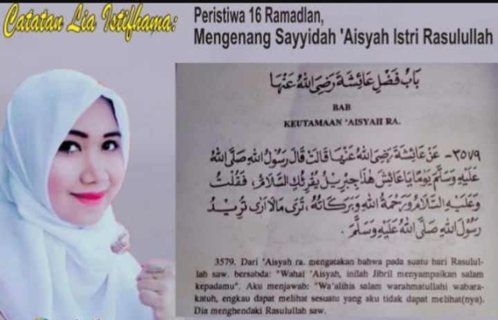 "Itulah sepenggal percakapan 'Aisyah dengan Rasulullah SAW yang diriwayatkan dalam kisah itu. Mohon maaf, ini ilmu penting yang harus kita pahami yang merupakan kisah teladan di bulan suci Ramadhan," urai Ning Lia, ibu dari dua putra itu.
