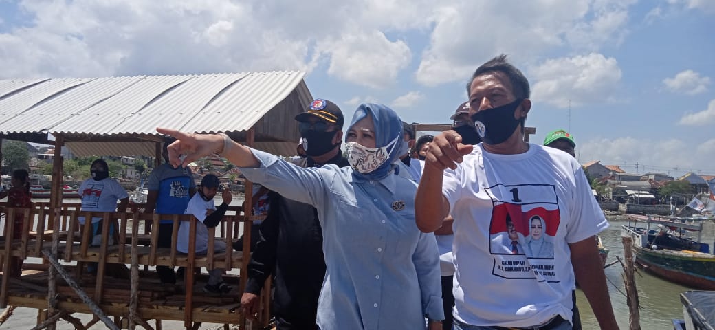 INFONews.id I Lamongan - Calon Wakil Bupati Lamongan nomor urut 1, Astiti Suwarni menyapa para nelayan saat blusukan ke kampung nelayan Pupantara Sedayu Lawas, Brondong, Selasa (13/10/2020).
