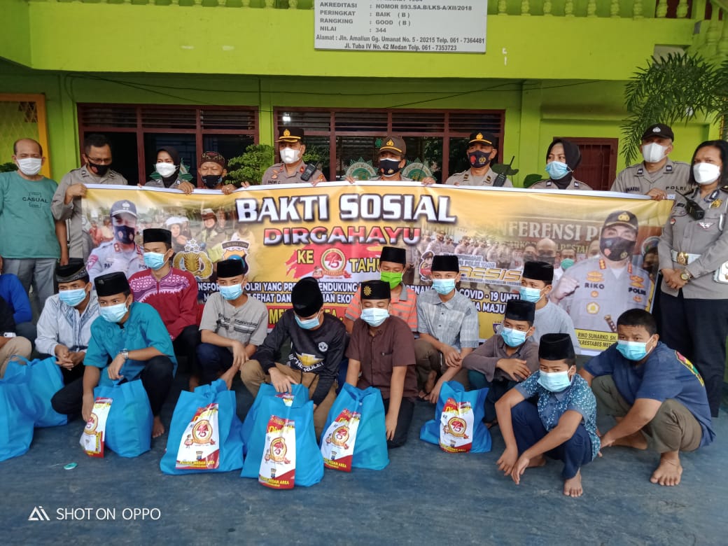 Kapolsek, Kompol Faidir didampingi Wakapolsek AKP Tri Eko, Kanit Binmas IPDA Sartono, Panit 1 Binmas AIPTU Junaedi, Kasie Humas AIPTU Hery dan personil Polwan Polsek Medan Area, berkunjung ke Panti Asuhan Darul Aitam Aceh Sepakat. Kapolsek memberikan tali asih 40 paket sembako dan diterima oleh Hasby.