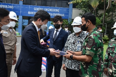 Selanjutnya, Laksda Iwan mendampingi DAPA Rok Mr. Kang Eun-Ho meninjau Galangan Kapal Selam di PT. PAL Indonesia beserta para delegasi, serta mengecek peralatan teknologi yang berada dalam galangan.