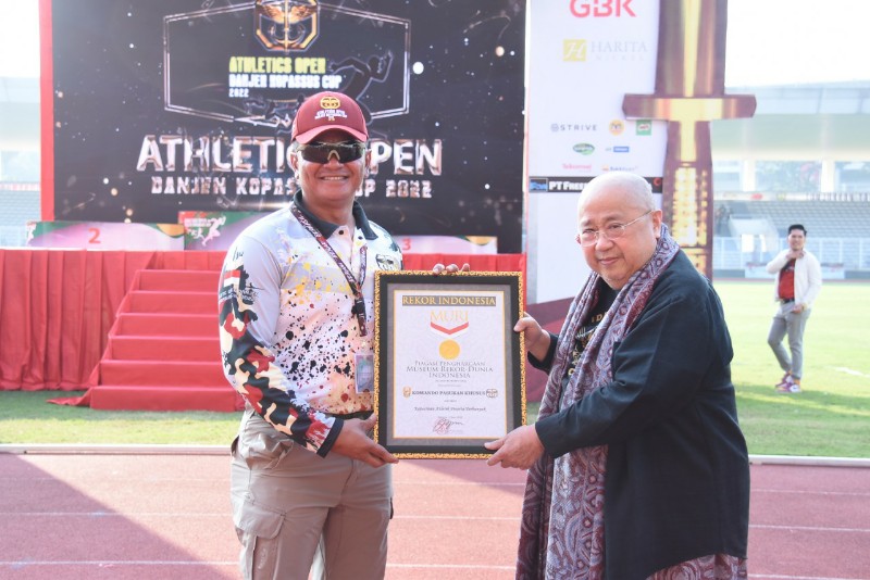 Penghargaan dari Museum Rekor Dunia Indonesia (MURI) diserahkan langsung oleh sang pendiri MURI, Prof. Dr. Jaya Suprana kepada Danjen Kopassus, Mayjen TNI Iwan Setiawan. Ketua PB PASI Luhut Binsar Pandjaitan yang memimpin langsung upacara penutupan "Athletics Open Danjen Kopassus Cup 2022”, menyampaikan apresiasi atas suksesnya penyelenggaraan kejuaraan terbuka terbesar di tanah air ini dan berharap akan muncul bibit-bibit atlet dan membantu perkembangan olahraga atletik di Indonesia.
