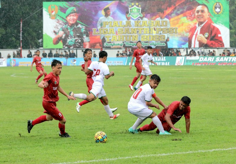 "Piala KASAD Liga Santri pertama kali diselenggarakan di Indonesia untuk menggali potensi para santri di ponpes seluruh Indonesia melalui cabang olaharaga sepak bola," tutur Gubernur Khofifah saat mendampingi KSAD Jenderal TNI Dudung Abdurachman dan Ketua Umum PSSI Muchamad Iriawan membuka Piala KASAD Liga Santri 2022 di Stadion Merdeka Jombang, Senin, (19/6/2022).