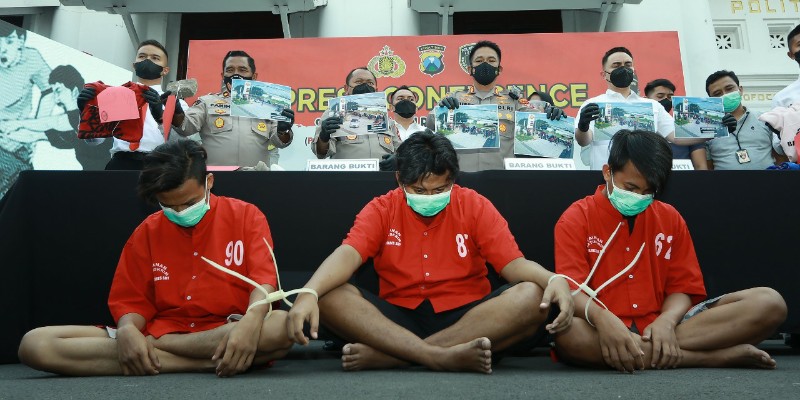 Saat ini ketiga pelaku telah dijebloskan ke tahanan Mapolrestabes Surabaya dan untuk mempertanggjawabkan perbuatannya, ketiga pelaku dijerat dengan Pasal 170 (1) dan ayat ke 2 KUHP dengan ancaman pidana 5 tahun penjara. (inf/rls/tji)