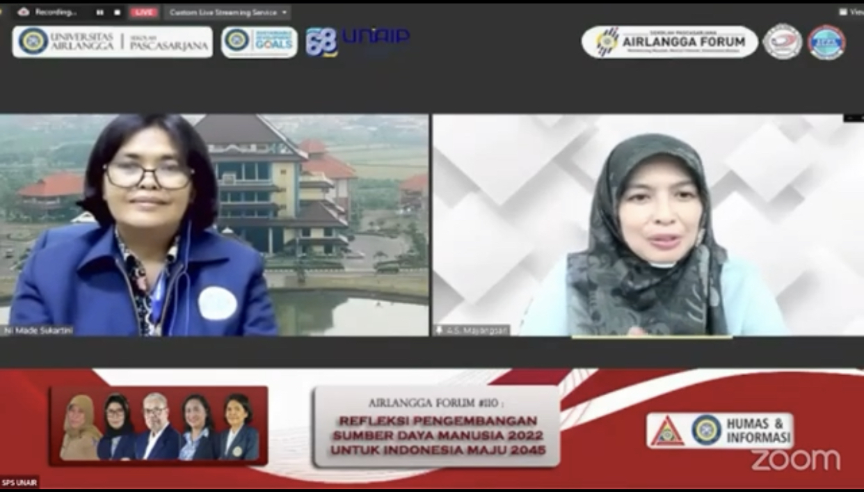 Hal tersebut ditanggapi oleh para ahli sumber daya manusia Sekolah Pascasarjana UNAIR dalam Airlangga Forum edisi 110 yang bertemakan “Refleksi Pengembangan Sumber Daya Manusia 2022 Untuk Indonesia Maju 2045” yang diselenggarakan pada hari jum’at (2/12/22).