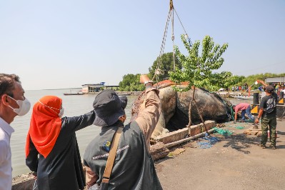 Khofifah juga berterimakasih kepada seluruh pihak yang telah bersinergi dan berkoordinasi terkait pengangkutan Paus Balin ini.