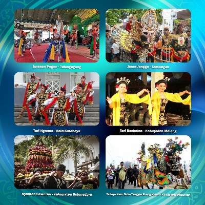 Kemudian Kembang Lamaran dari Kota Probolinggo, Brem Madiun dari Kab. Madiun, Tari Topeng Ghettak dari Kab. Pamekasan, Keket dari Kab. Situbondo, Ngetung Batih dari Kab. Trenggalek dan Manten Pegon dari Kota Surabaya.