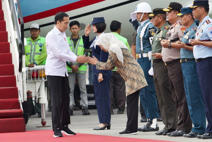 Infonews.id | Surabaya - Gubernur Jawa Timur Khofifah Indar Parawansa menyambut kedatangan Presiden RI Ir. Joko Widodo, tiba di Bandara Internasional Juanda pada pukul 09.20 WIB dengan menggunakan pesawat Kepresidenan Indonesia-1.