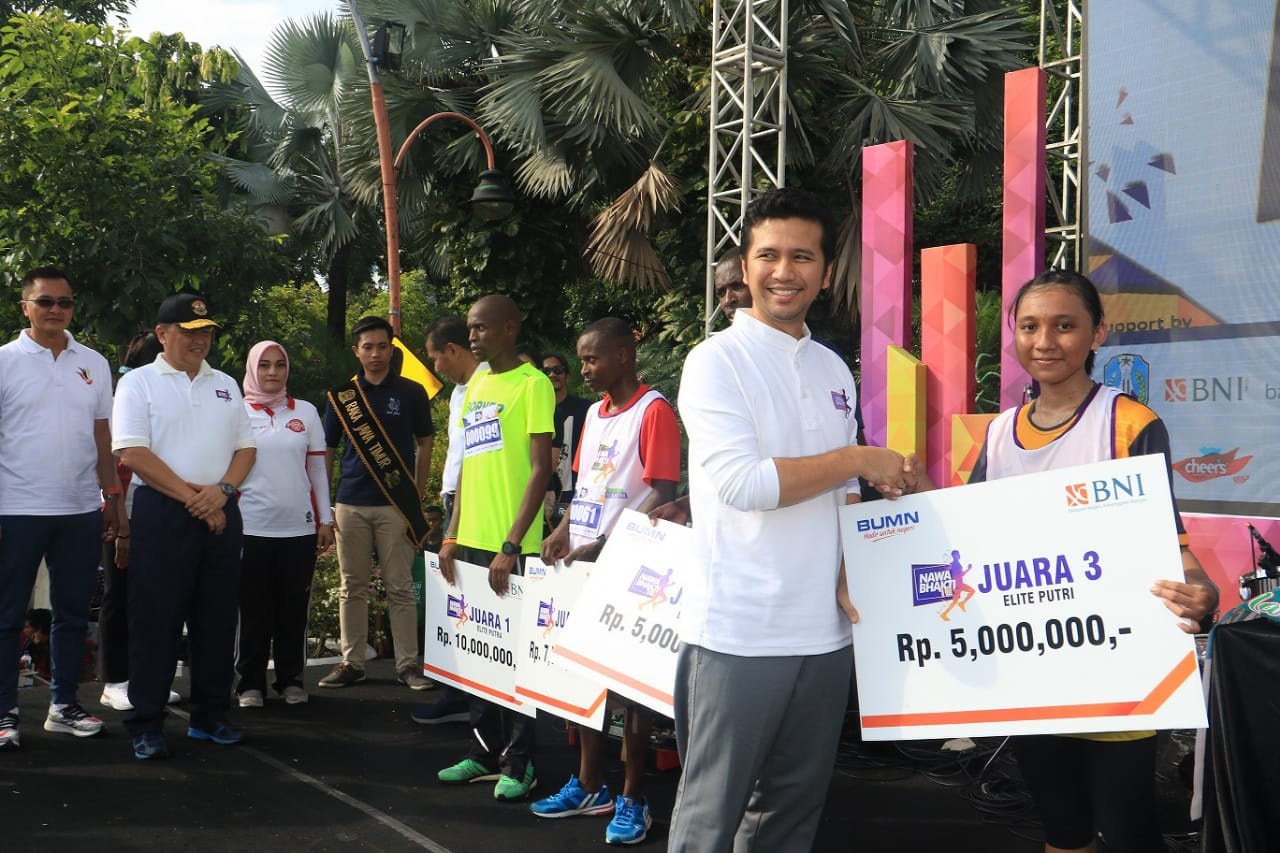 Wakil Gubernur Jawa Timur, Emil Elestianto Dardak memberangkatkan lomba lari bertajuk Nawa Bhakti Fun Run 10 K di Gedung Negara Grahadi Surabaya, Minggu (28/4) pagi.