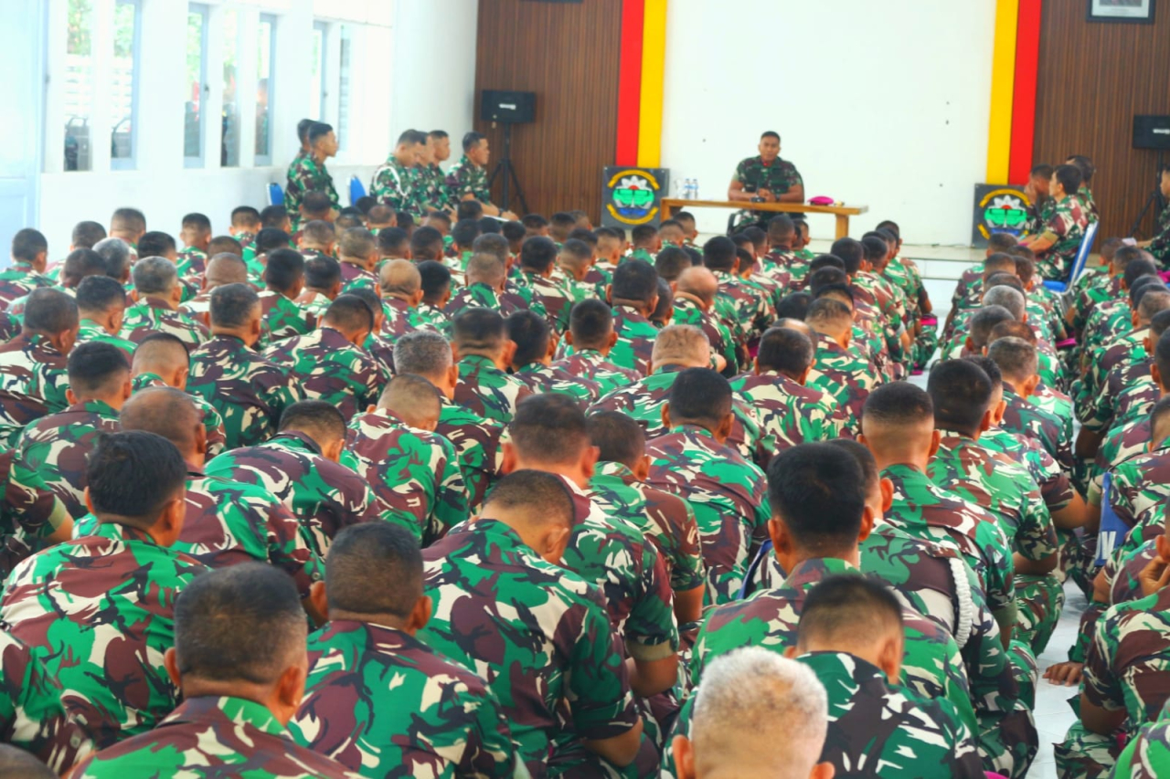 Sambung Komandan, "Berkomunikasi dan ciptakan kekeluargaan antar sesama prajurit dan pimpinan guna menyelesesaikan segala kendala dibawah untuk evaluasi perbaikan. Dan juga masalah judi online (Judol) yang marak di kalangan prajurit, harapannya tidak ada lagi yang bermain Judol," tegasnya.