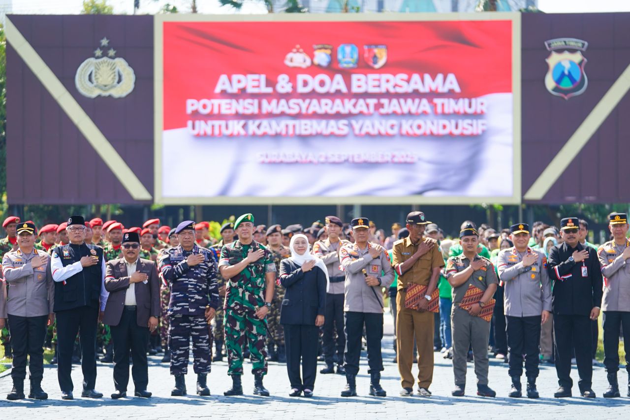 Khofifah menegaskan apel dan doa bersama ini bukan sekadar seremoni, melainkan momentum penting untuk meneguhkan komitmen menjaga Jawa Timur tetap aman, damai, dan kondusif di tengah dinamika nasional.