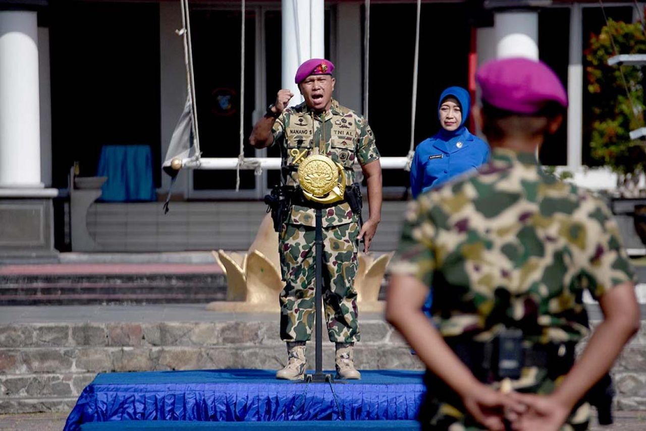 SURABAYA, iNFONews.ID - Komandan Brigif 2 Marinir Kolonel Marinir Daniel Tarigan menghadiri upacara tradisi pelepasan dan mengantar Pejabat Lama Komandan Pasmar 2, Brigadir Jenderal TNI (Mar) Nanang Saefulloh, S.E., M.M., di Kesatrian Marinir Moekijat, Mako Pasmar 2, Gedangan, Sidoarjo, Jawa Timur. Rabu (03/09/2025).