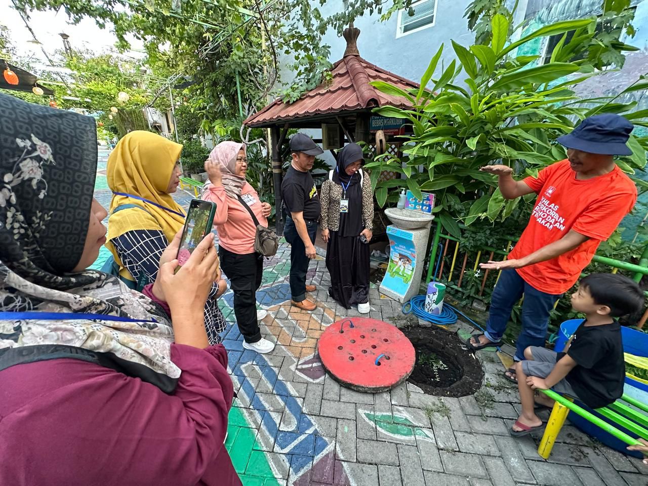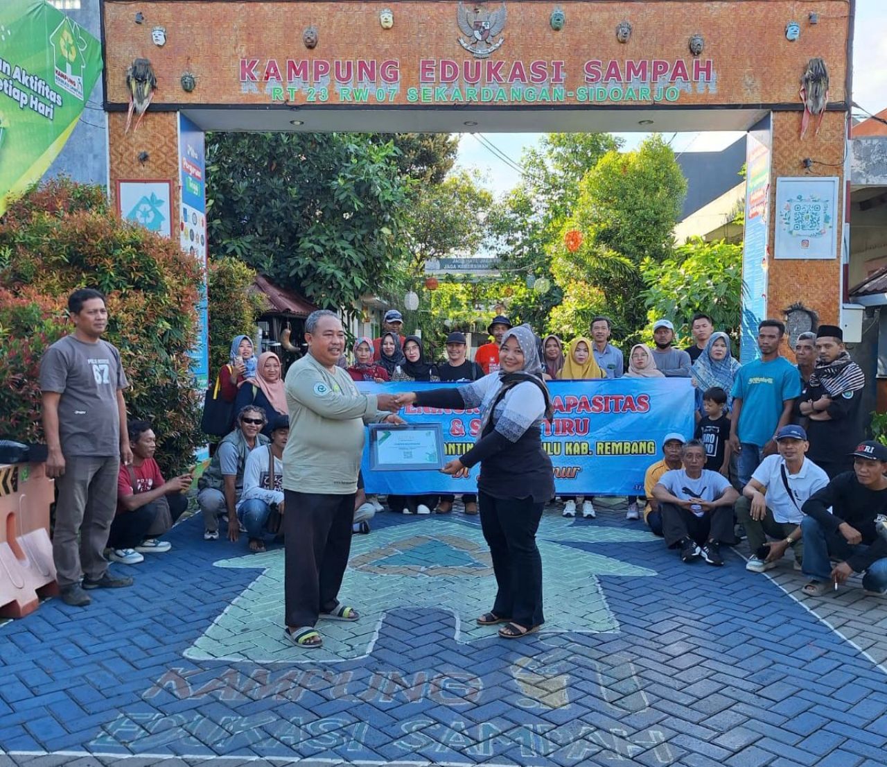 Tiba di lokasi, rombongan disambut suasana kampung yang tertata, bersih, penuh edukasi visual, dan hidup dengan gotong royong. Kampung Edukasi Sampah menjadi contoh nyata bahwa gerakan lingkungan dapat tumbuh bukan dari proyek besar, tetapi dari kemauan warga, keteladanan, dan konsistensi gerakan kecil yang dilakukan setiap hari.