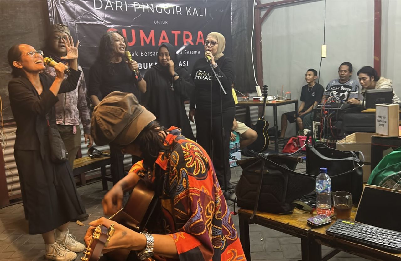 SURABAYA, INFONews.ID - Sederet musisi Surabaya tampil dalam acara "Dari Pinggir Kali untuk Sumatra" yang digelar oleh Komunitas Jurnalis Riverside (Pinggir Kali) pada Selasa (9/12/2025), malam.