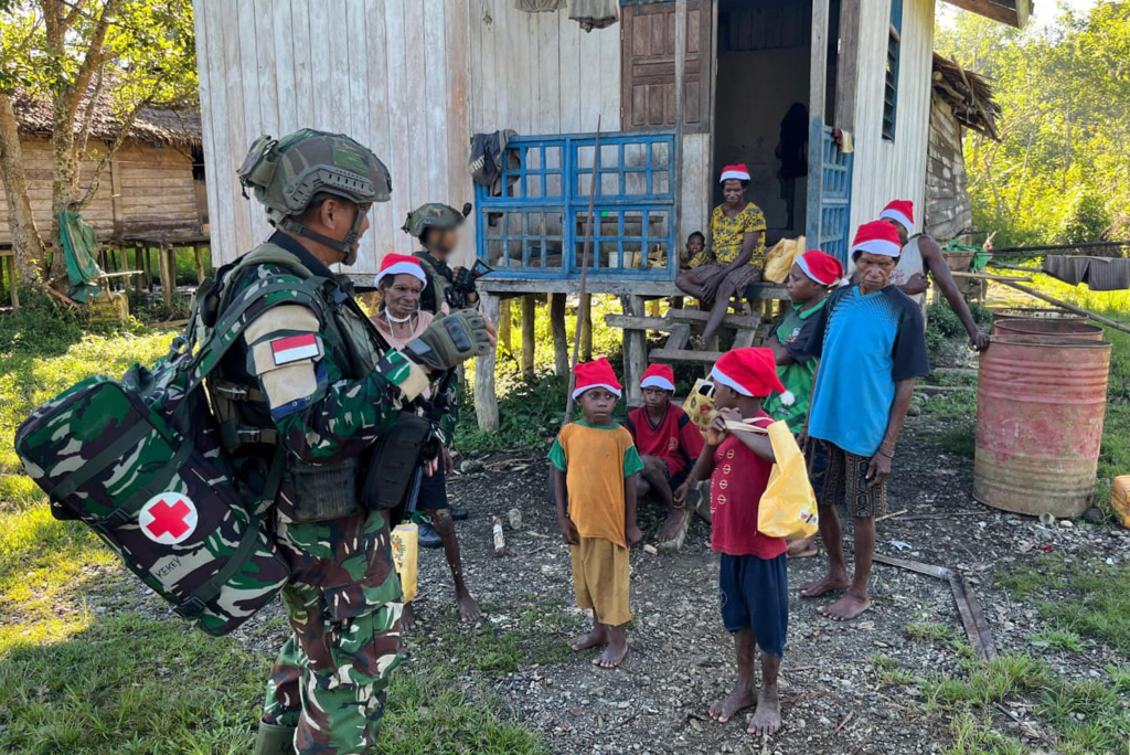 Pada Minggu (28/12/2025), sejak pagi hari, iringan langkah prajurit Marinir tampak menembus kabut pegunungan dan menyusuri jalan kampung. Mereka hadir bukan semata sebagai penjaga batas negara, tetapi juga sebagai pembawa kabar sukacita Natal. Di tangan para prajurit tergenggam bingkisan Natal yang telah lama dinantikan oleh masyarakat setempat.