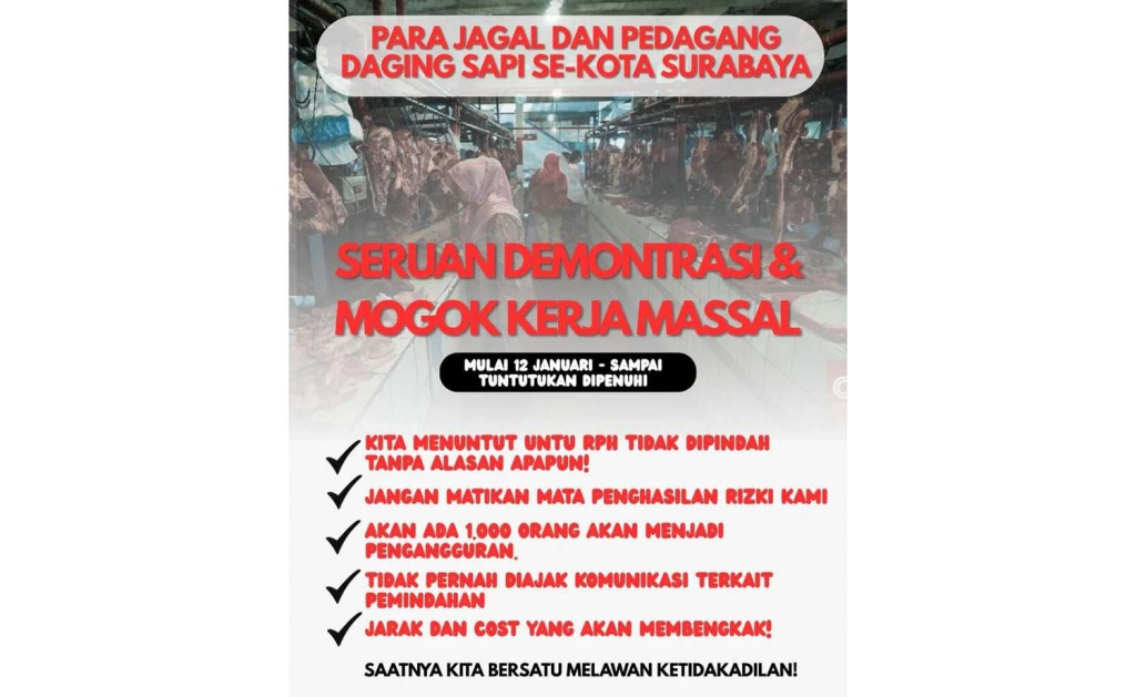 Langkah mogok massal ini dipicu oleh rencana relokasi Rumah Potong Hewan (RPH) Pegirian ke wilayah Tambak Oso Wilangun (TOW).