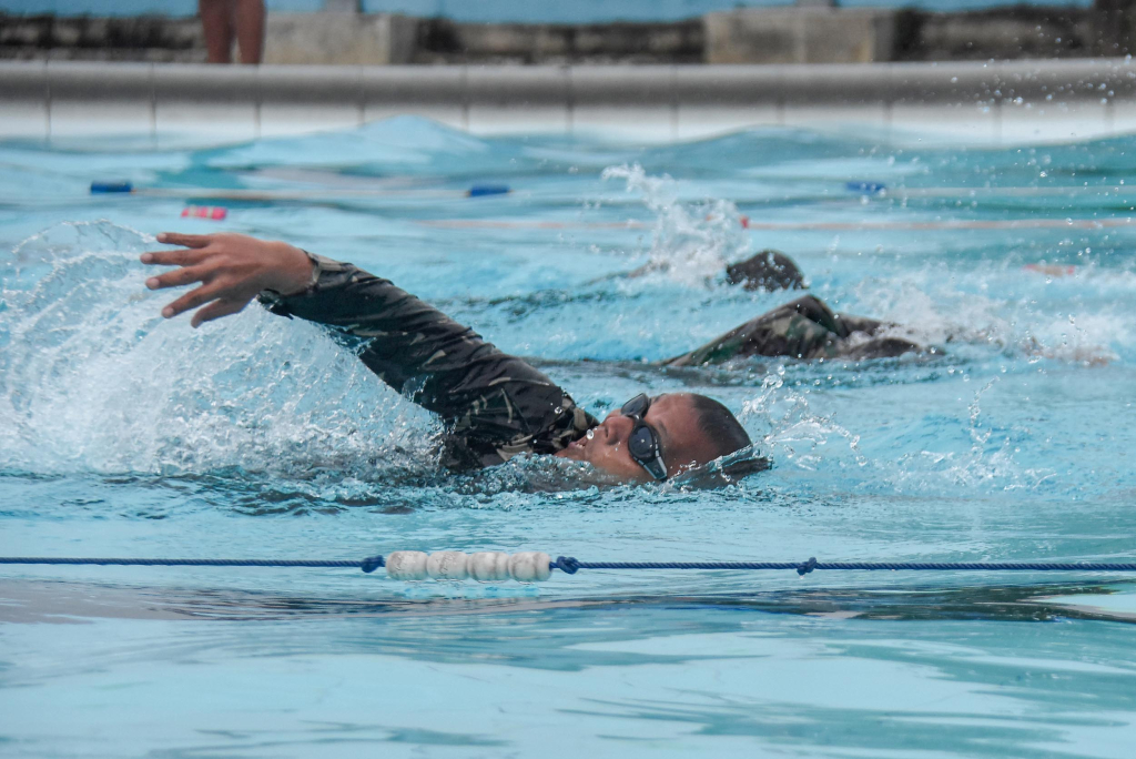 Renang merupakan salah satu kemampuan dasar yang wajib dimiliki oleh setiap prajurit Korps Marinir. Kegiatan latihan diawali dengan pemanasan guna menghindari cedera, kemudian dilanjutkan dengan pelaksanaan renang sejauh 1000 Meter menggunakan Pakaian Dinas Lapangan (PDL).