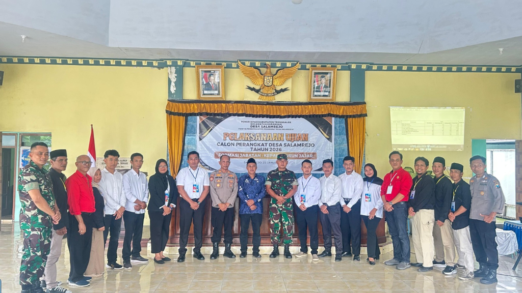 TRENGGALEK, iNFONews.ID – Komitmen TNI melalui satuan teritorial kewilayahan dalam mendukung kemajuan pemerintahan desa terus ditunjukkan secara nyata. Salah satunya melalui pengawalan pelaksanaan ujian calon Perangkat Desa formasi Kepala Dusun Jajar, Desa Salamrejo, Kecamatan Karangan, Kabupaten Trenggalek, Jumat (23/1/2026).