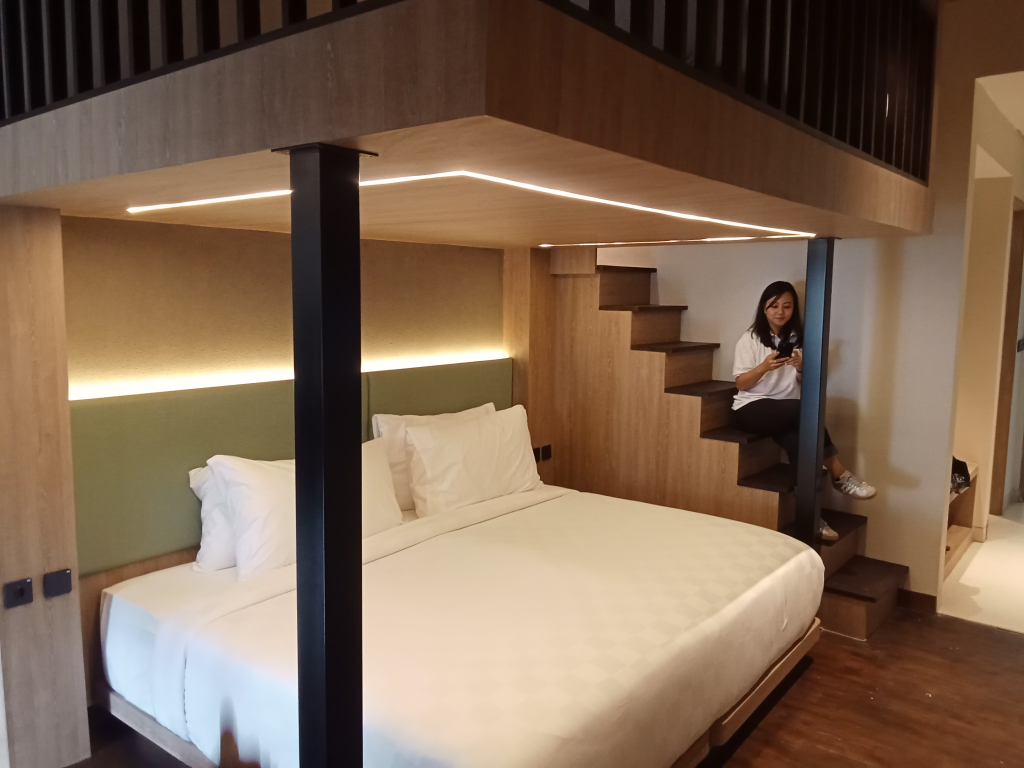 Kamar dibuat simpel dengan privasi terjaga, ada kamar mandi di dalam, tersedia juga ruang komunal yang menjadi pusat interaksi. Konsep hostel next level juga disiapkan untuk menginap dan beristirahat dengan nyaman. Tersedia juga hiburan meja biliar, pingpong, ruang karaoke, pantey juga vending machine, menambah suasana semakin hidup.