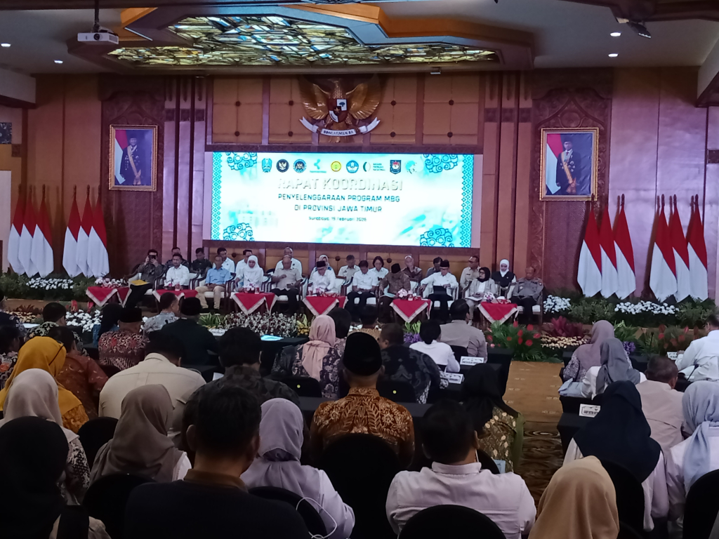 SURABAYA, iNFONews.ID – Gubernur Jawa Timur Khofifah Indar Parawansa bersama Menteri Koordinator Bidang Pangan Zulkifli Hasan menggelar Rapat Koordinasi Penyelenggaraan Program Makan Bergizi Gratis (MBG) di Provinsi Jawa Timur yang digelar di Ruang Hayam Wuruk Kantor Sekretariat Daerah Provinsi Jawa Timur, Surabaya, Kamis (19/2/2026).