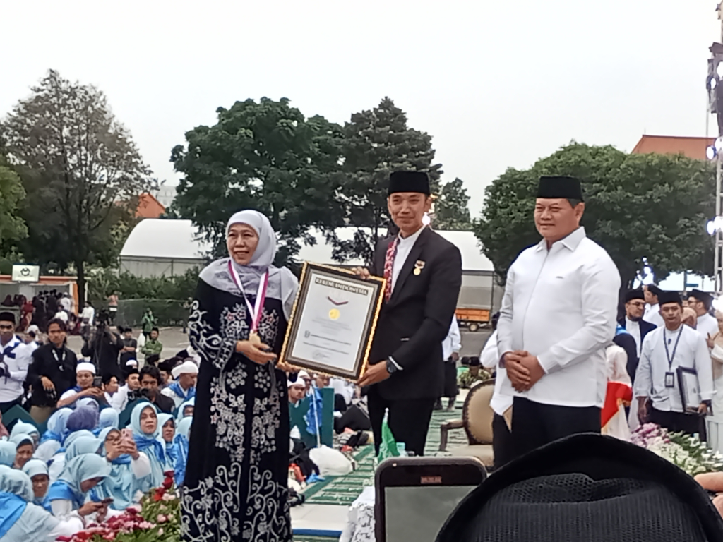 Gubernur Khofifah menerima penghargaan tiga Rekor MURI (IN/PHOTO: TUDJI)