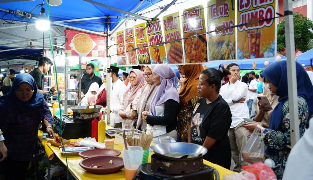 Suasana pasar semakin meriah menjelang waktu berbuka. Pengunjung menikmati ngabuburit di area tenant, mengikuti kuis Ramadan, serta menyaksikan mini konser religi.