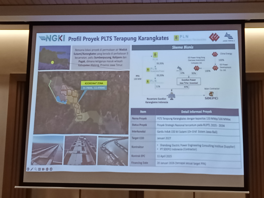 “PLTS Terapung Karangkates diharapkan mampu memberikan nilai tambah yang signifikan, baik dari sisi energi maupun sosial ekonomi. Berdasarkan materi proyek, pembangkit ini berpotensi melistriki sekitar 100.000 rumah tangga dan menekan emisi karbon hingga 181.700 ton CO2 per tahun,” ungkap Ndaru.