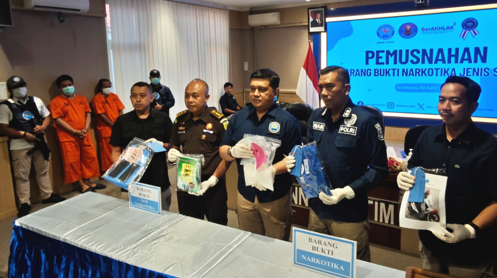 SURABAYA, iNFONews.ID - Badan Narkotika Nasional Provinsi (BNNP) Jawa Timur memusnahkan barang bukti (BB) narkotika jenis sabu seberat hampir satu kilogram dari pengungkapan kasus peredaran gelap di Surabaya. Pemusnahan BB dilakukan, Kamis, 2 April 2026, berdasarkan Laporan Kasus Narkotika Nomor LKN/0003-NAR/III/2026/BNNP Jawa Timur, Kamis (2/4/2026).