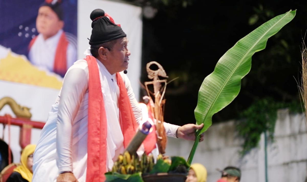 Tokoh Besut yang dimainkan Meimura membuka pertunjukan dengan monolog reflektif. Ia membawa obor dan daun pisang, melantunkan kidung tentang pentingnya menjaga kerukunan warga Sidoarjo.
