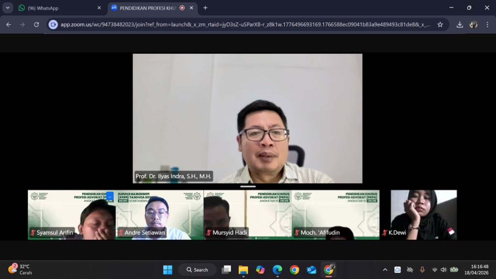 "Dunia hukum itu luas. Kalian punya instrumen keilmuan spesifik yang sangat dibutuhkan. Tingkatkan kapasitas diri, bukan malah memelihara rasa rendah diri," ujar Ilyas saat memberi pembekalan virtual.