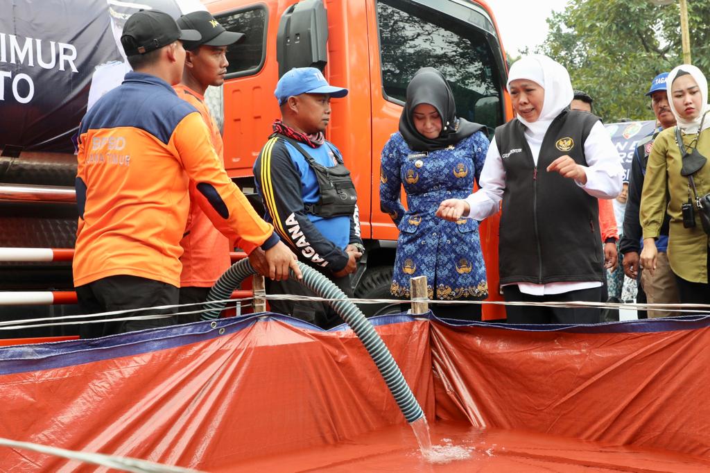 Gubernur Khofifah meninjau langsung penyediaan air bersih untuk masyarakat menghadapi Kemarau Ekstrem (IN/PHOTO: HUMAS)